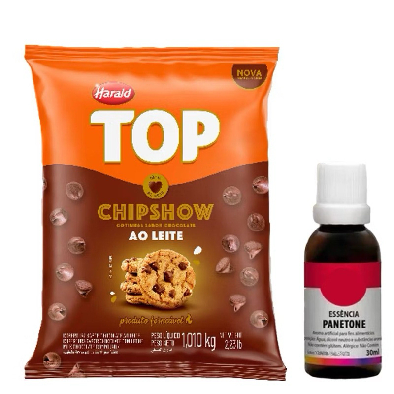 Kit 1 Gotas Chocolate ao Leite Chipshow Top Harald + 1 Essencia Panetone 30 ml
