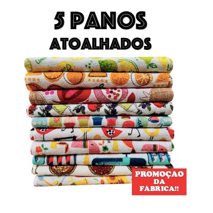 kit Pano de Prato ATOALHADO GRANDE - KIT 5 PANOS FELPUDO - Preço REVENDA Casa e Cozinha