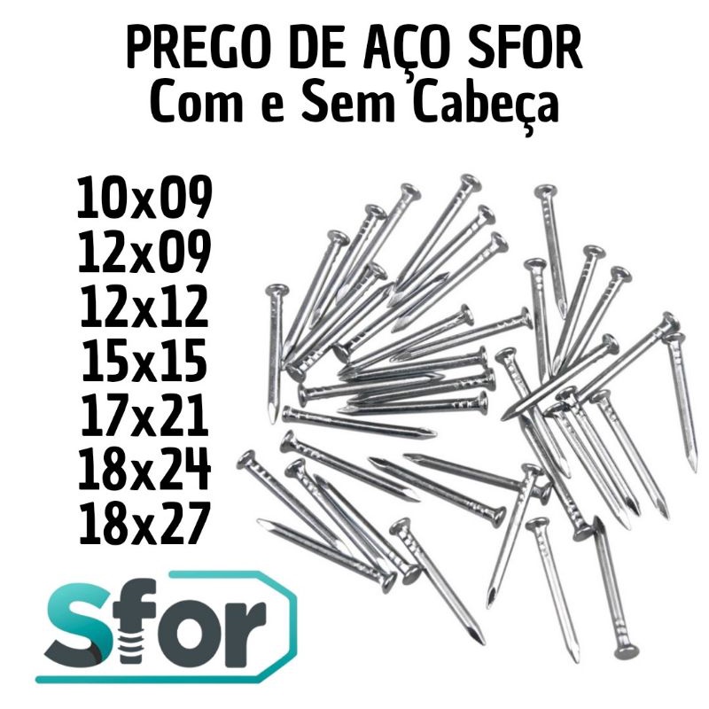 Prego de Aço com e sem Cabeça Sfor Kit c/ 10 30 e 100 10x09 12x09 12x12 15x15 17x21 18x24 18x27