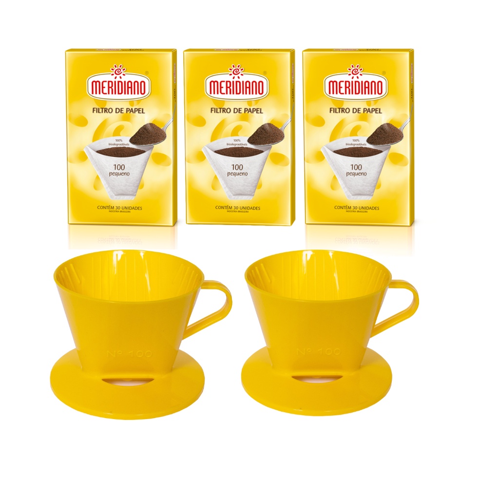 Kit com 02un Suporte para filtro de café e 03un Filtros de Papel para café | tamanho 100 (P)