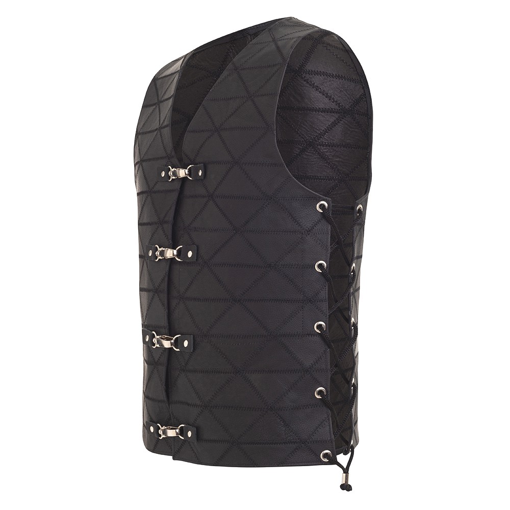 Colete Em Couro Legitimo Retalhado Com Fechamento Em Mosquetão Motoclube