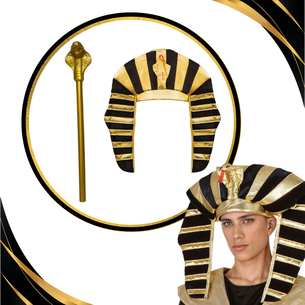 Kit Fantasia de Faraó Egípcio Masculino Infantil e Adulto Cosplay Halloween Carnaval