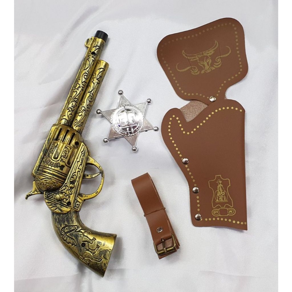 Kit Mini Garrucha Com Som e Suporte Coldre Fantasia Cosplay Cowboy Country Festa Junina Halloween Carnaval