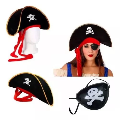 KIT Chapeu, Bandana e Tapa Olho Pirata Fantasia Coplay, Halloween, Carnaval e Festa