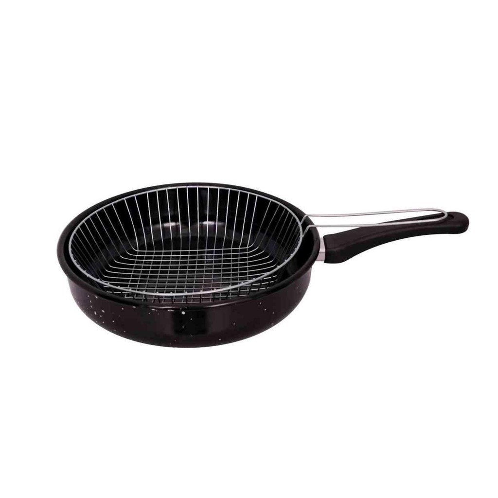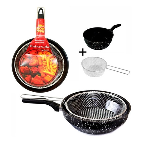 Frigideira De Ferro Esmaltado Com Cesto Fritatudo 20cm Fritura Batata