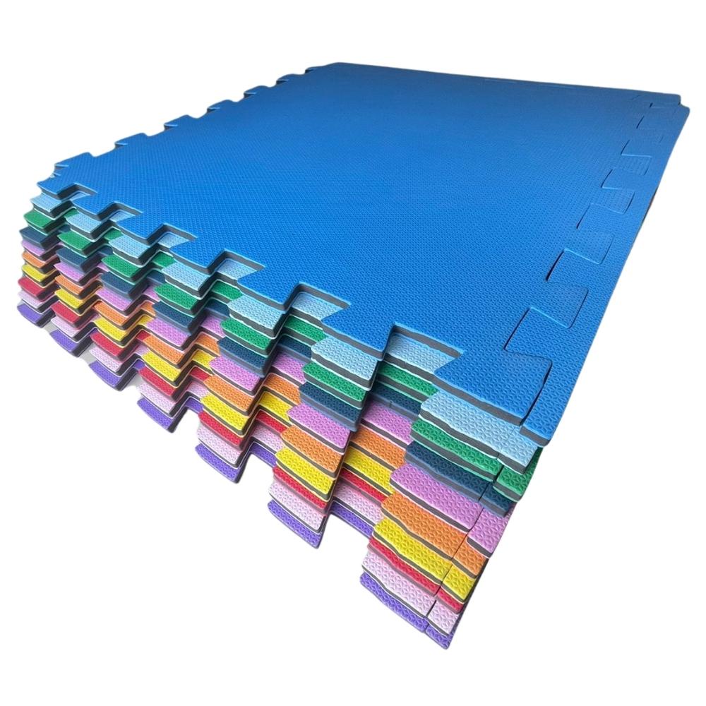Tatame Tapete EVA 50cm x 50cm x 2cm Dupla Face Azul Royal com Preto