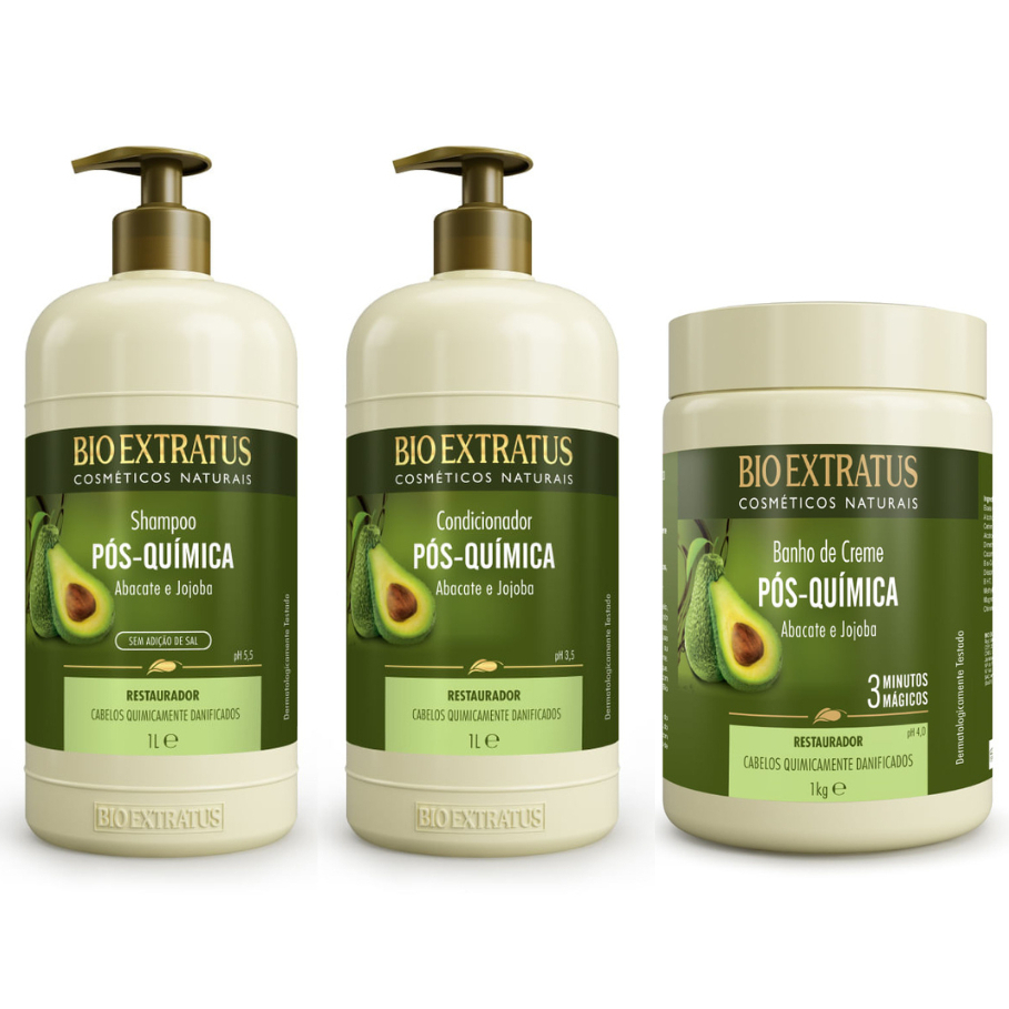Kit Pós-Química Shampoo, Condicionador e Banho de Creme Bio Extratus - 1L Tratamento Restaurador
