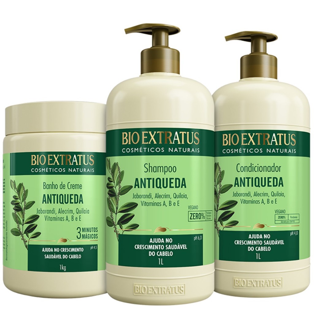 Kit Jaborandi Shampoo, Condicionador e Banho de Creme Bio Extratus- 250mL Antiqueda e Crescimento