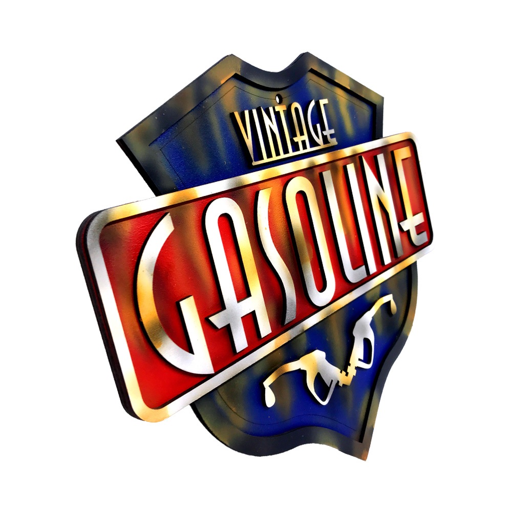 Placa Decorativa Vintage Gasoline Ferrugem 3D Alto Relevo MDF Cantinho do Churrasco Decoração Restaurante Bar Garagem