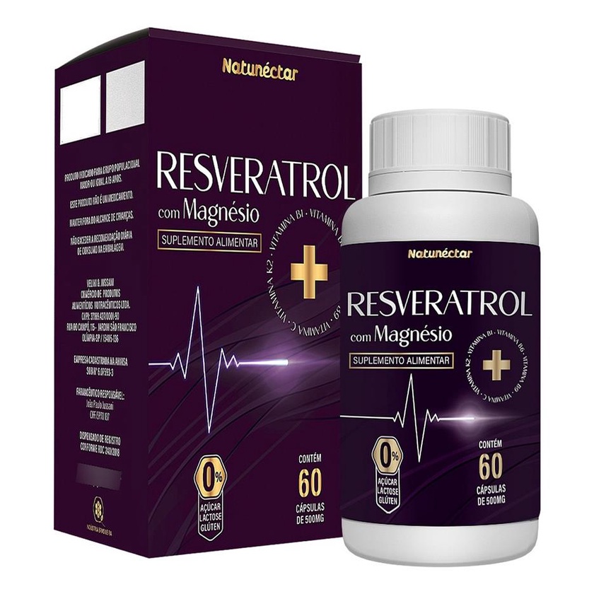 Trans Resveratrol Magnésio Suplemento Natural Vitaminas Frasco 60 Caps Original Concentrado Puro