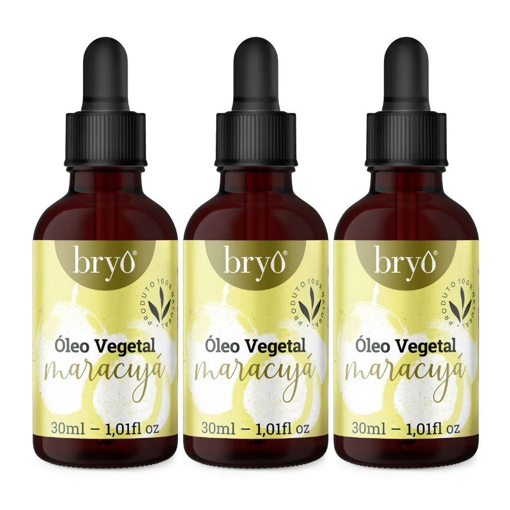 KIT 3 ÓLEO VEGETAL MARACUJá CORPORAL NATURAL 100% PURO 30ML CADA BRYO CONCENTRADO