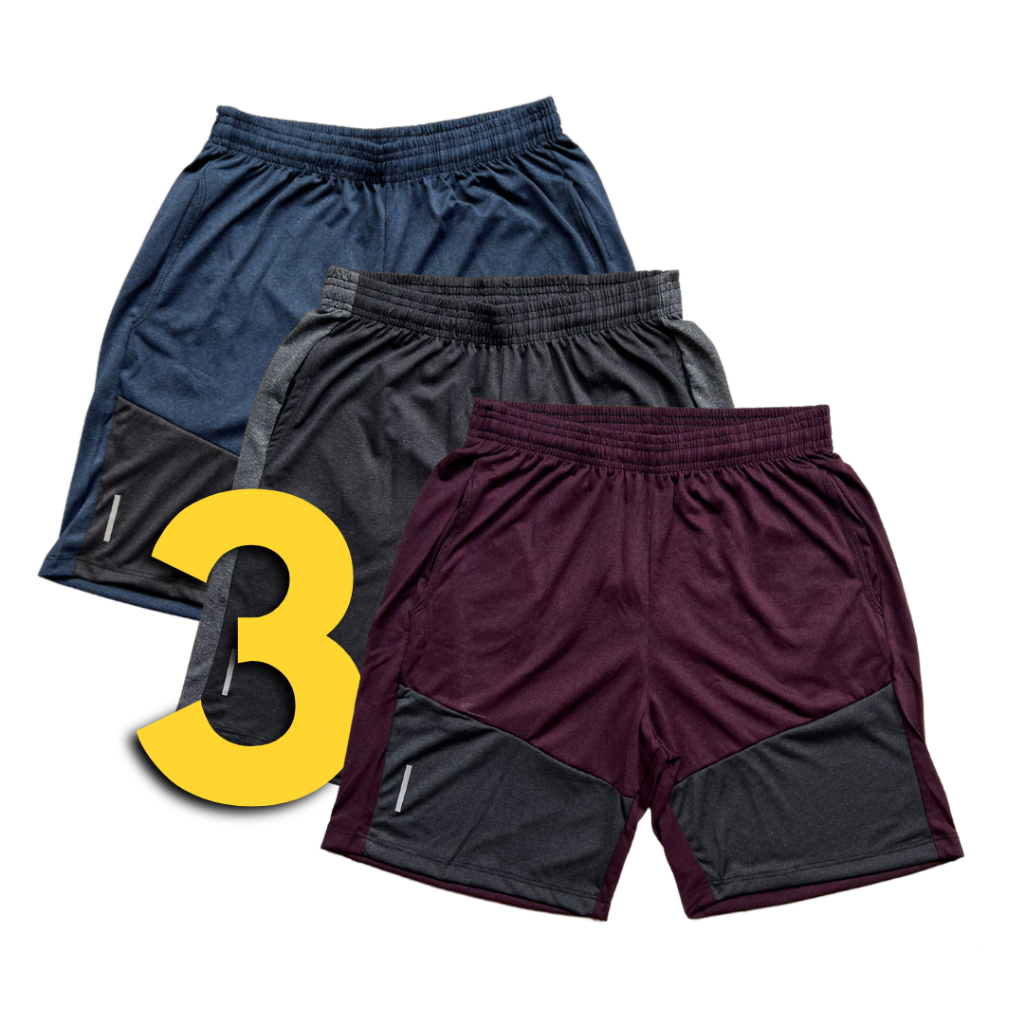 Short Dry Fit Kit com 3 Bermuda Masculina Shorts para academia Masculino Com bolso lateral, elástico e cadarço interno.
