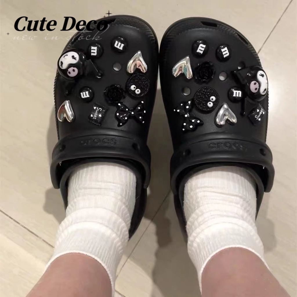 Sapatos da Série Black Love Bow Decoração de Calçados DIY Jibbitz Charming Crocs