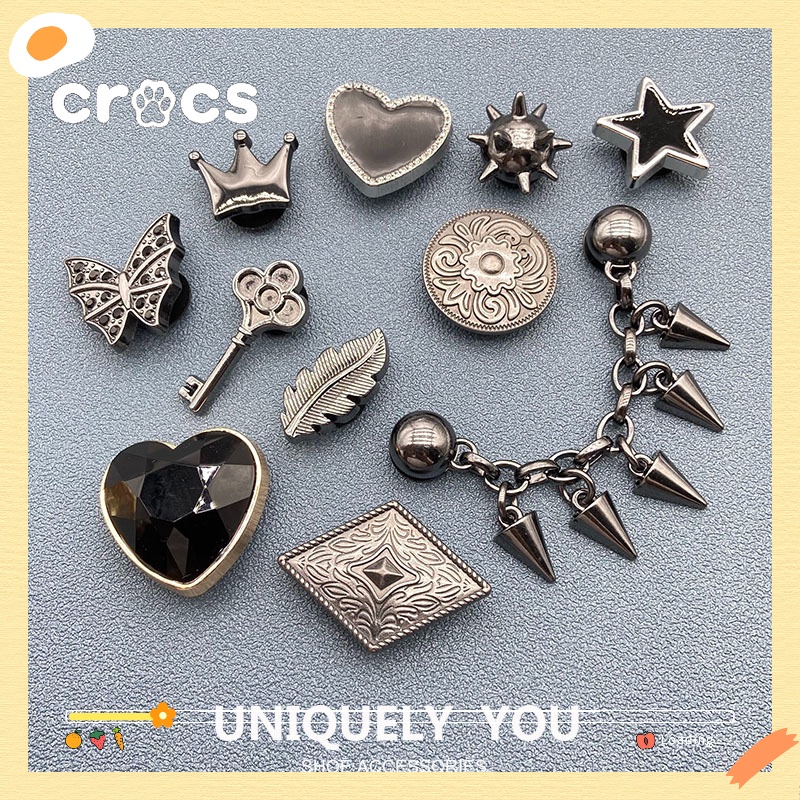 Crocs Jibbitz Fivelas De Sapatos Da Série Preto E Cinza De metal Alta Qualidade Acessórios De Entupimento Encanta Chinelos Moda Decorativas
