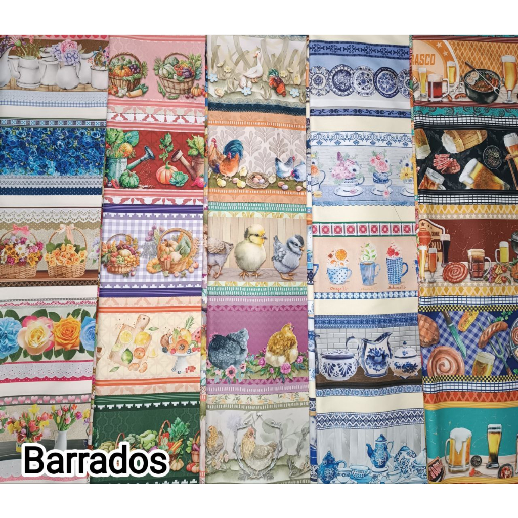 Kit 5 faixas barrados - várias estampas - tricoline digital 100% algodão largura 50cm x 75cm