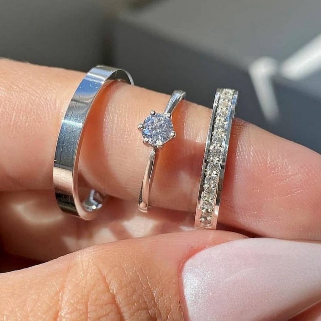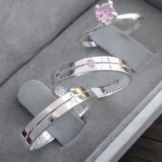 Par de alianças de Namoro fininha minimalista prata 925 3mm com anel solitario