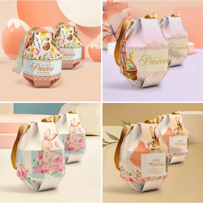 CAIXA PARA OVO DE PASCOA TRIO 50G / 100 G KIT 10 UNIDADES