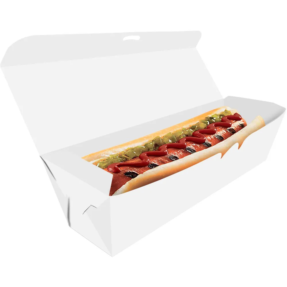 Embalagem de Hot dog / Cachorro Quente delivery Branco/Kraft com encaixe e saída de Ar quente 17,5cm x 8cm x 6,5cm - 10,25,50,75,100 Unidades