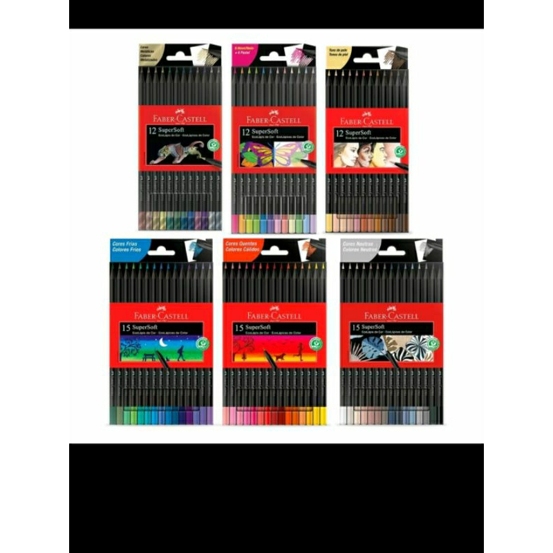 Lápis de Cor Faber-Castell - EcoLápis Supersoft, 15 Cores E 12 Cores - Amantes de artes e Papelaria - Papelaria criativa e fofa - Material escolar - Materiais artesanatos
