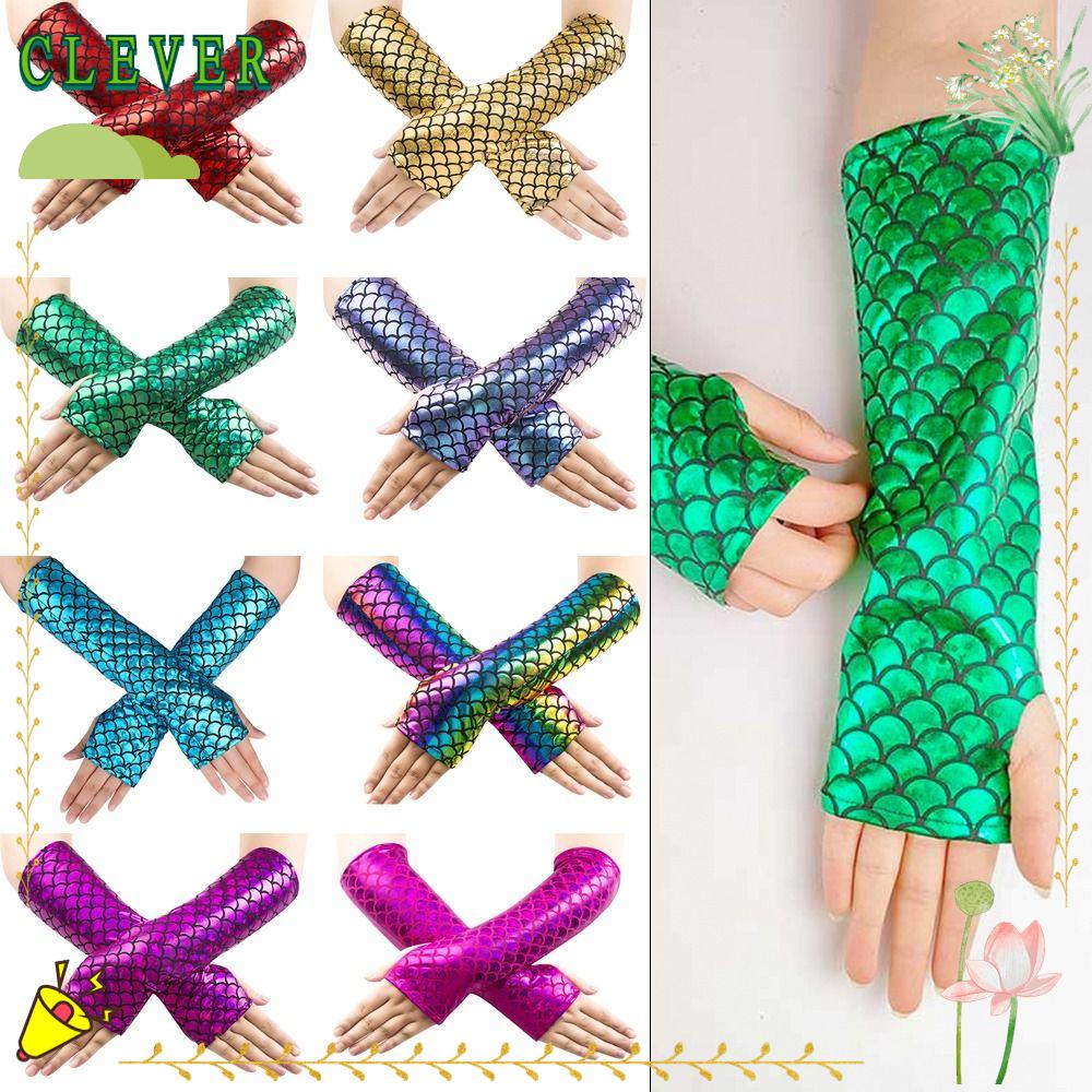 CLEVER Luvas Sem Dedos , De Braço Coloridas Em Escamas De Peixe Longas De Fantasia Cosplay Vestido De Sereia