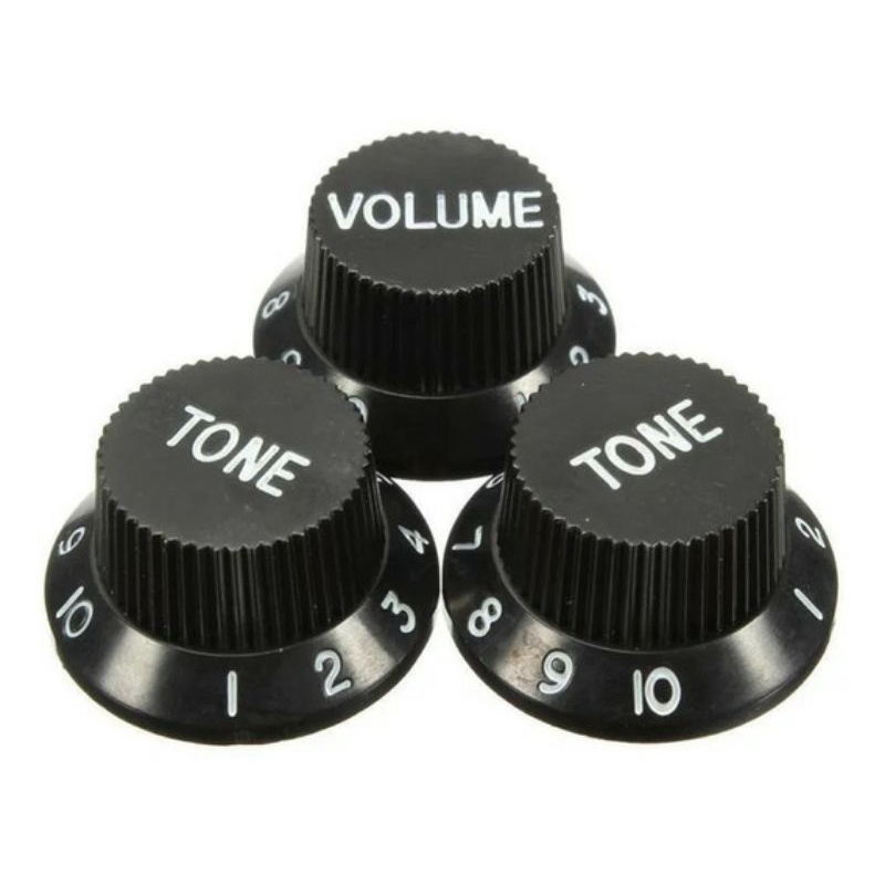 Knob Para Guitarra Strato - Kit Com 3 Peças: 1 Volume 2 Tone + Ponteira