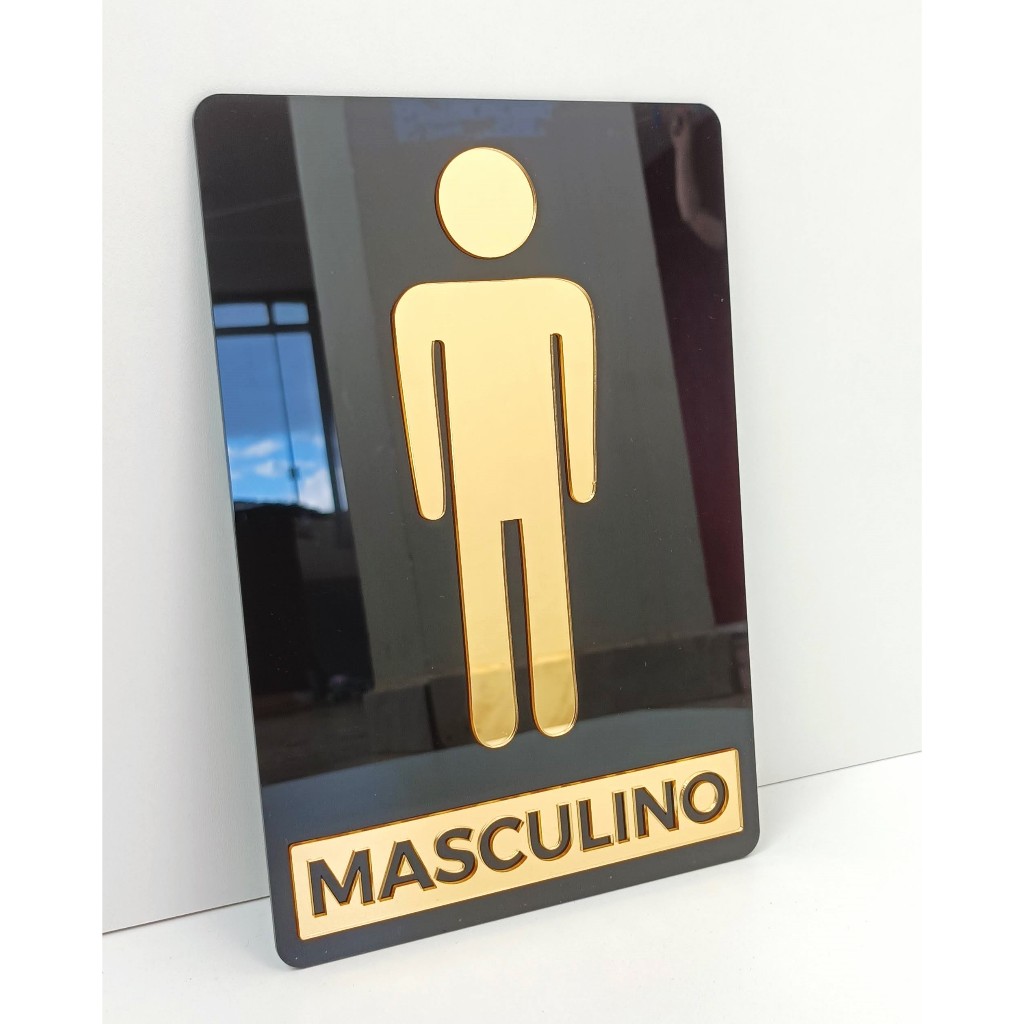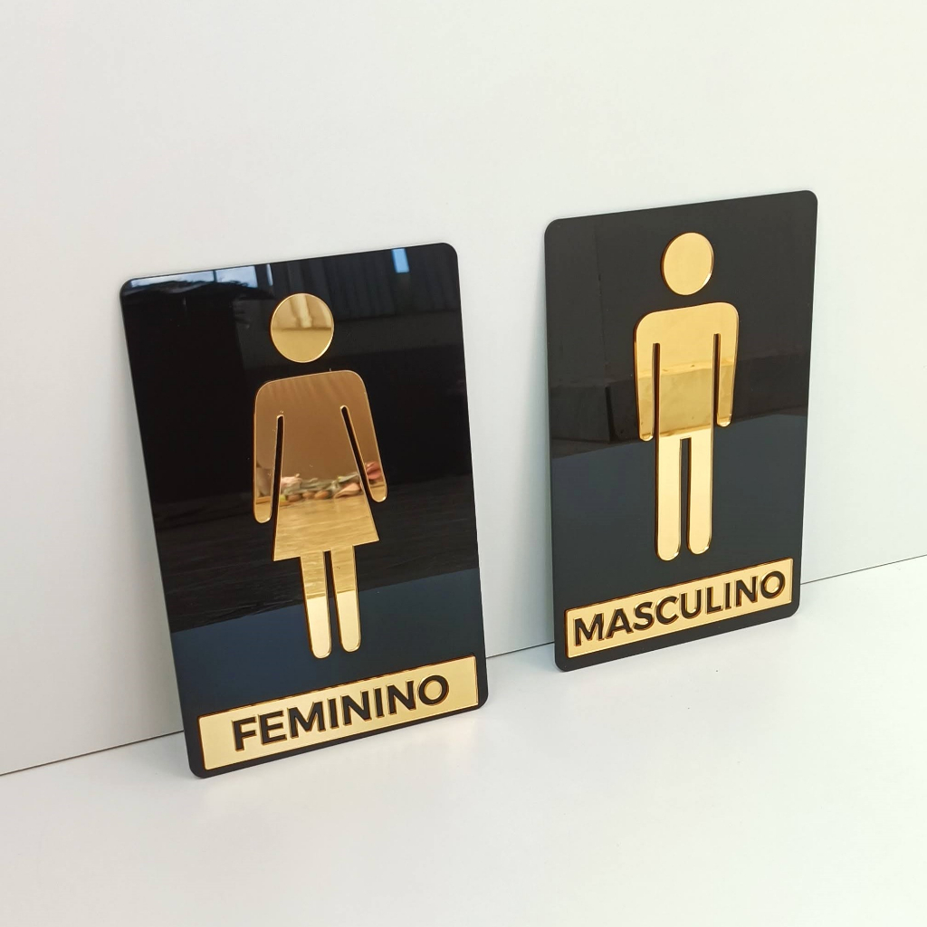 kit 2 Placas Acrílico Espelhado Para Porta Banheiro Feminino e Masculino - Placa Sinalizadora - Espelhada