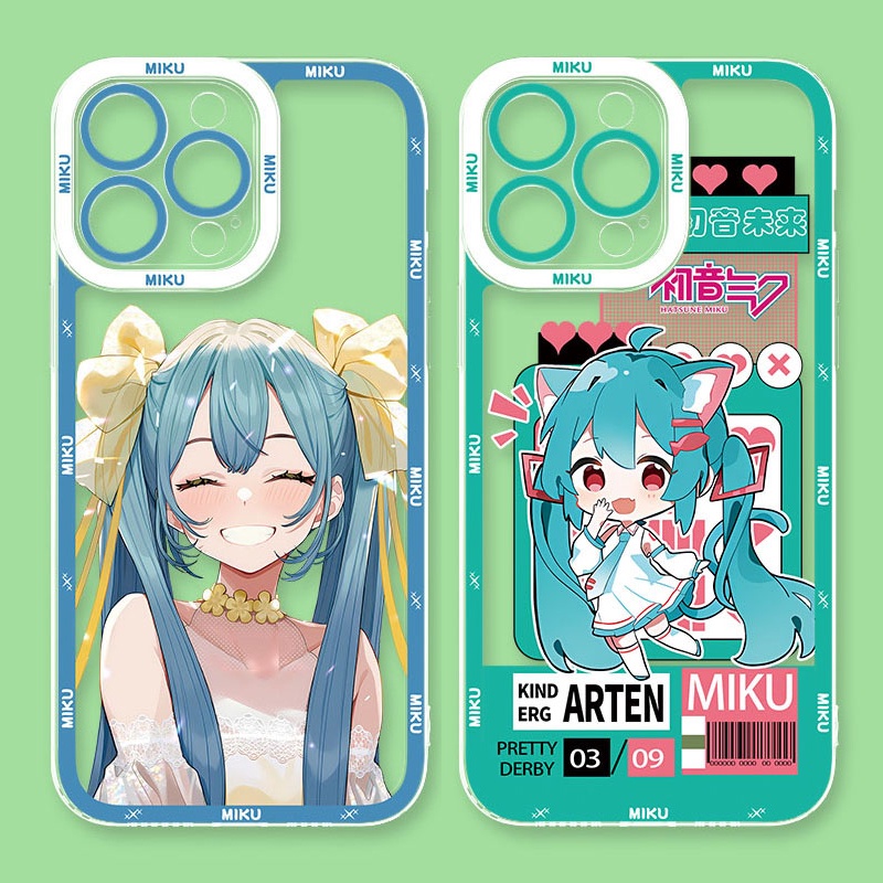 Capa Capinha Case iphone 15 x 6 6s 7 8 Plus 11 12 13 mini 14 Pro Max XR XS Suave Claro Fofo anime miku Capa De Celular