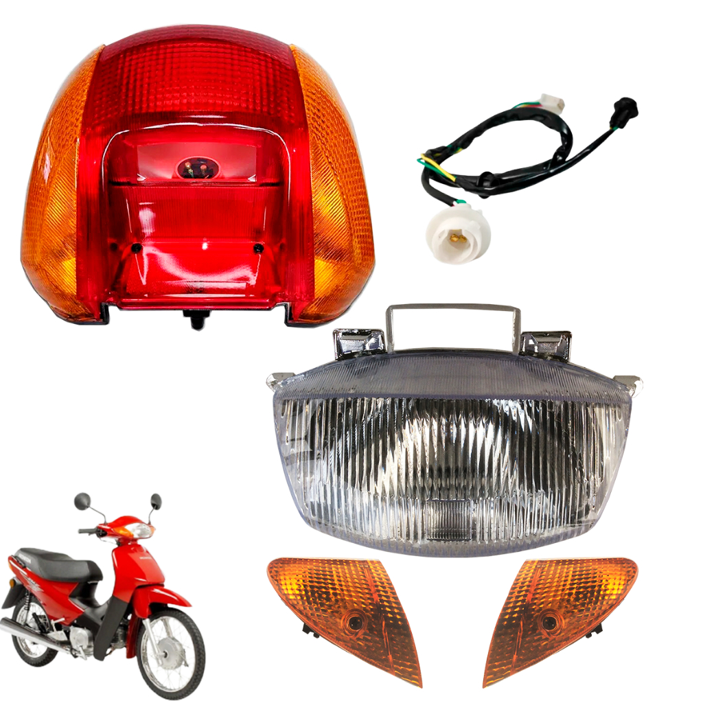 Kit Bloco Óptico Farol + Piscas Dianteiros + Lanterna Traseira Completa Biz 100 1998 1999 2000 2001 2002 2003 2004 2005
