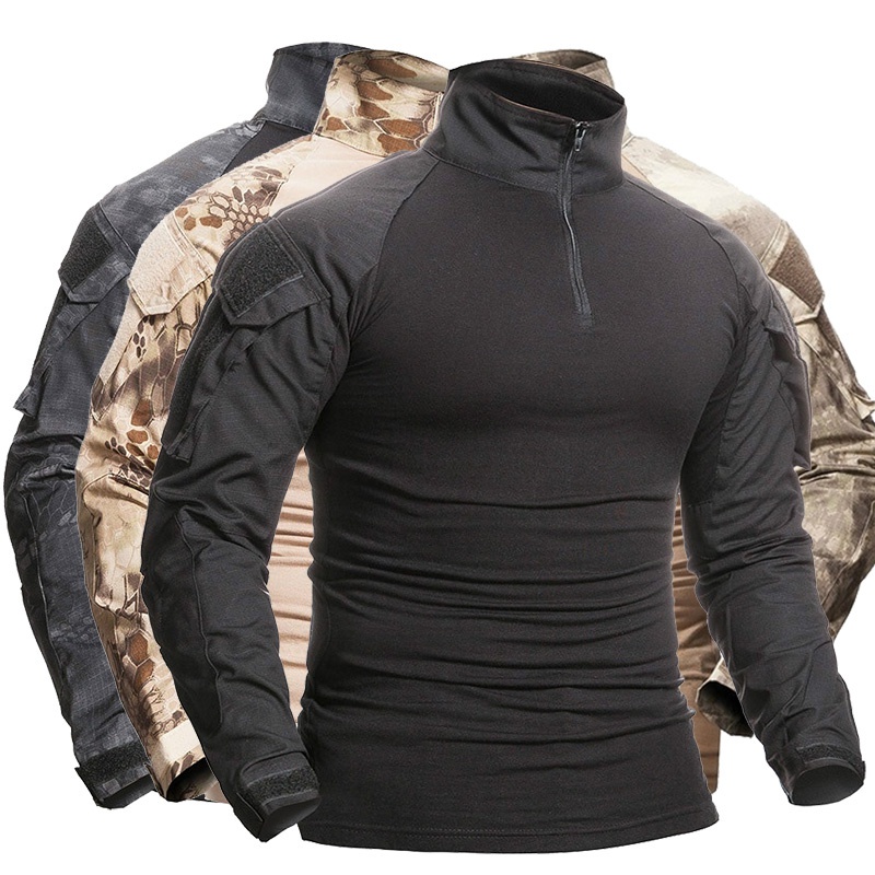 Camiseta Camuflagem Homens Tática De Combate Ao Exército De Manga Longa Respirável Ar Livre Camisetas Camping Hiking Tops Roupas De Caça
