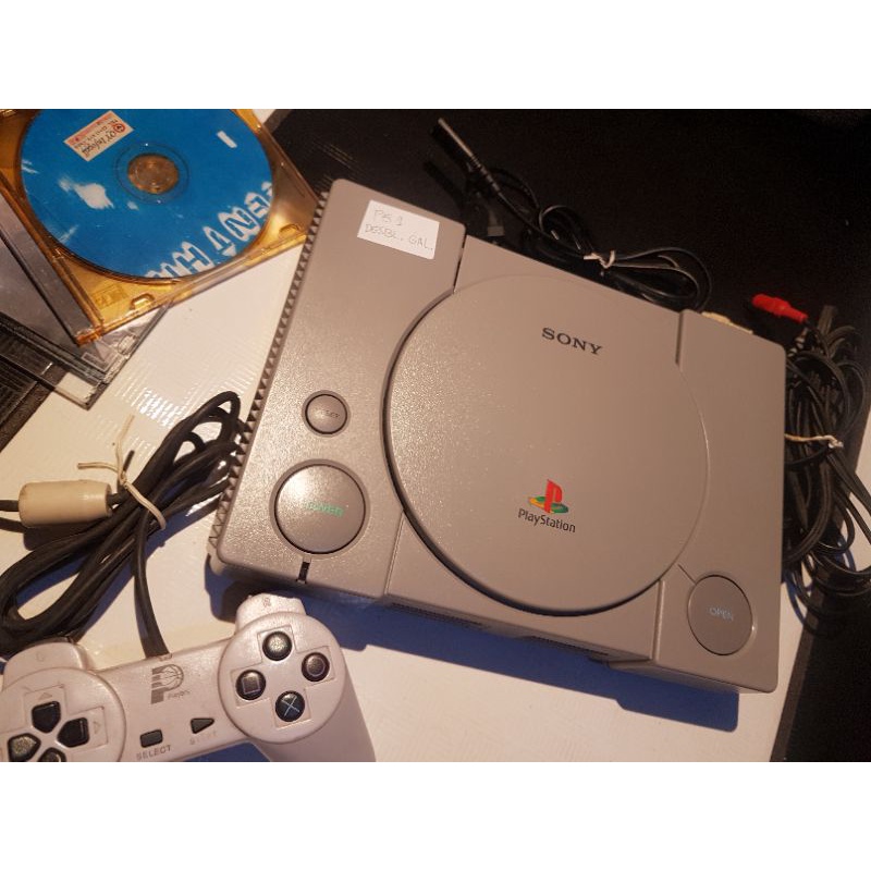 Ps1 fat desbloqueado. Um controle paralelo, 2 jogos paralelos, cabo de força e cabo AV original. Só uma observação: ao tirar o cd, segure clamp com o dedo, conforme a foto, senão pode desencaixar
