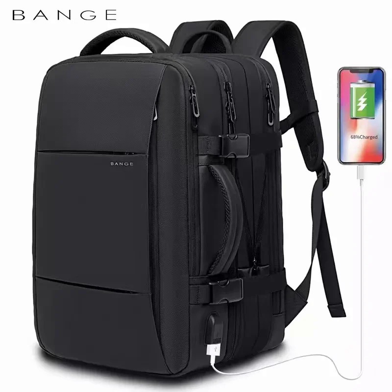 BANGE Mochila De Viagem Homens Mochila De Negócios Escola Expansível USB Bag Grande Capacidade 17.3 Laptop Impermeável Moda Mochila