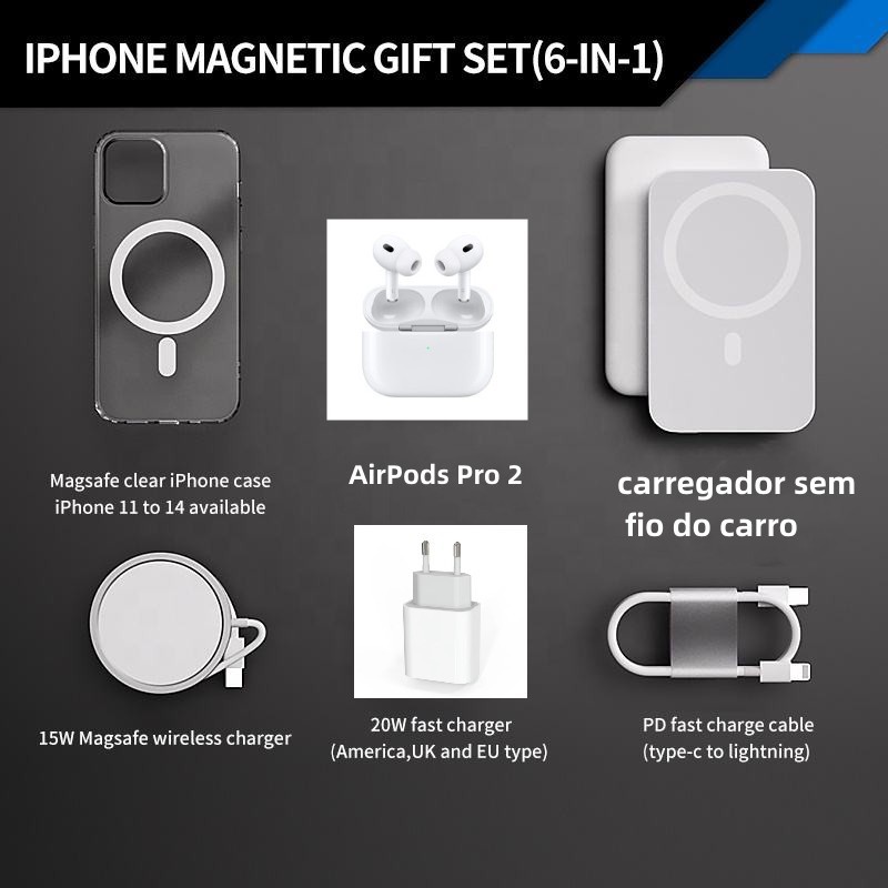 Christmas Gift 12 pro Max Magsafe Conjunto De Carregador Sem Fio Para iphone Maçã 13/11mini/Cinco Acessórios/xsr/Cabo De Dados/airpods Pro 2 /fone de ouvido sem fio