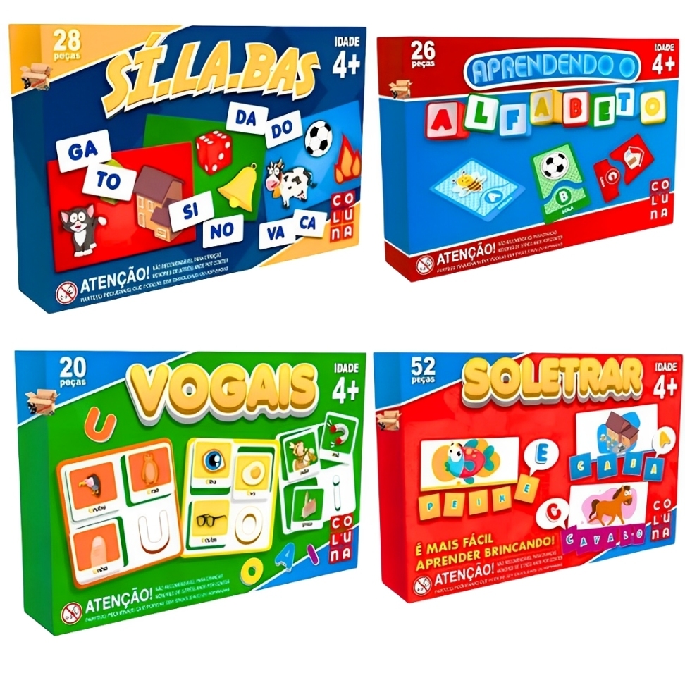 Kit Brinquedo Pedagógico Educativo 4 Jogos Vogais + Sílabas + Soletrar + Alfabeto - Pais E Filhos