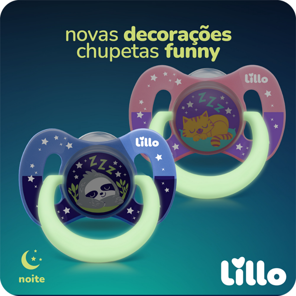 Kit Com 2 Chupetas Anatômicas Dia e Noite Rosa e Azul - Brilha no Escuro - Tam.2 +6m Lillo