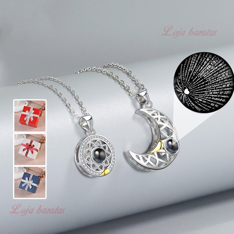 100 iDiomas Eu Te amo colar projeção pingente Sol e Lua Amor Memória Confissão Colar casal presente do dia dos namorados