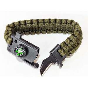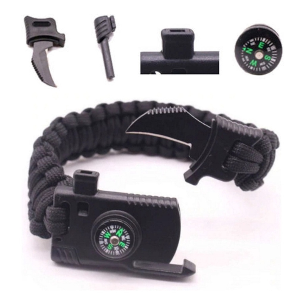 Bracelete Tático Paracord Pulseira Sobrevivência Corda Apito Bussola Faca 5 em 1