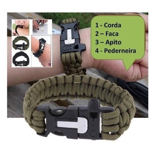 pulseira Paracord com Apito Pulseira Militar Tática 6 em 1