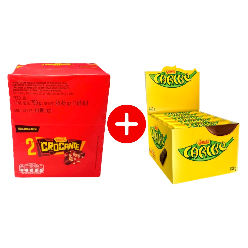 Kit Caixa De Chocolate Caribe + Crocante GAROTO 25g - 2cx c/ 30un Cada