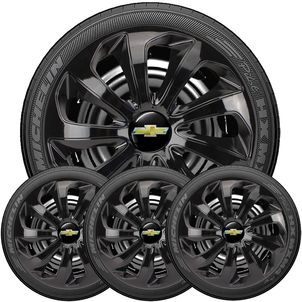 Jogo 4 Carlotas Esportivas aro 13/14 Preta Brilhante Chevrolet Gm Prisma Onix Omega Monza