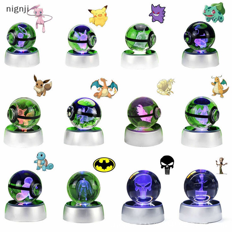 Nignji Pokemon Crystal Ball 3D Toy Snorlax Mewtwo Pikachu Figuras Pokémon LED BR