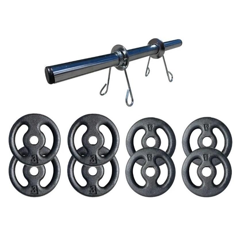 Kit 20kg Com Barras E Anilhas P/ Musculação Halter + Brinde! FITNESS PRADO! 4X3+4X2