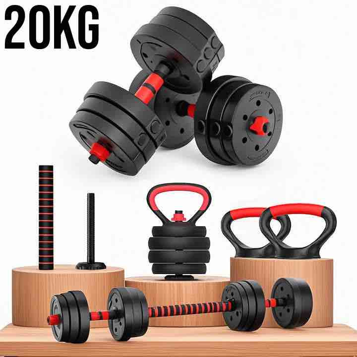 Kit Anilhas Barras de Halteres e Kettelbell Ajustáveis 6 em 1- até 20kg - Treino completo em sua casa