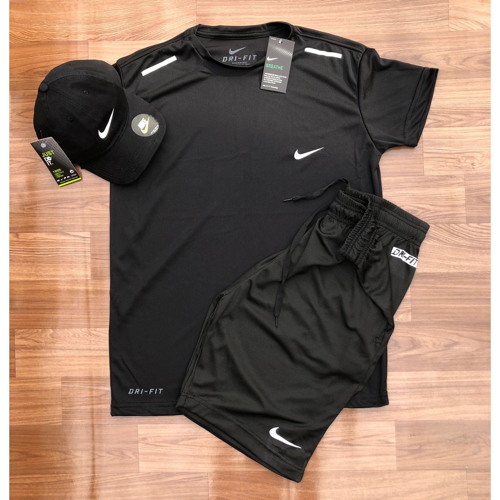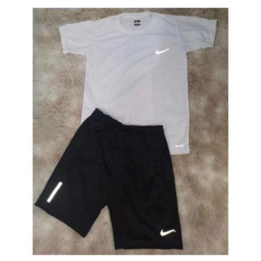 Kit 1 Camisa + 1 Bermuda Masculino Dry Fit / Conjunto Mauricinho com Logo Refletivel