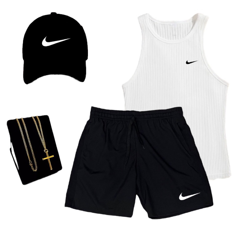 Conjunto masculino Bermuda, Camisa, Boné, Cordão Nk