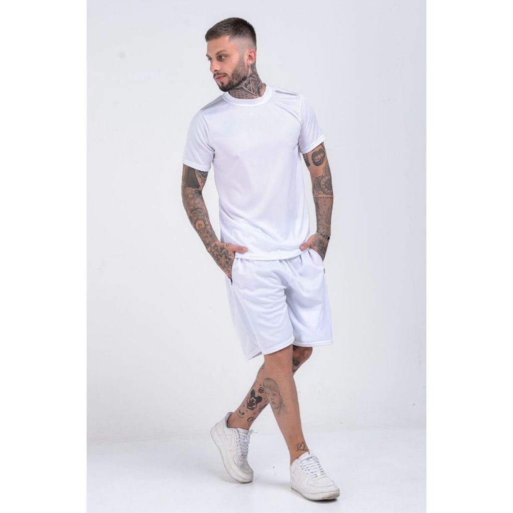 Conjunto / Kit Camisa + Bermuda DryFit - Slim Masculino - Black / White