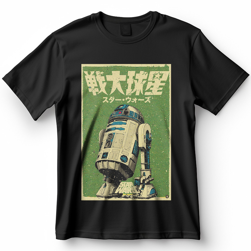 Camiseta Star Wars R2-D2 com Estilo Japonês Retrô Verde Blusa Camisa 100% Algodão