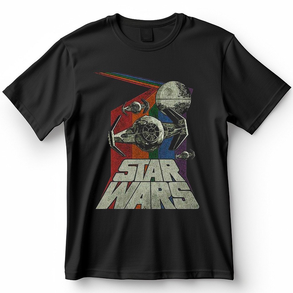 Camiseta Star Wars Estilo Retrô com Estrelas da Morte e Arco-Íris Blusa Camisa 100% Algodão