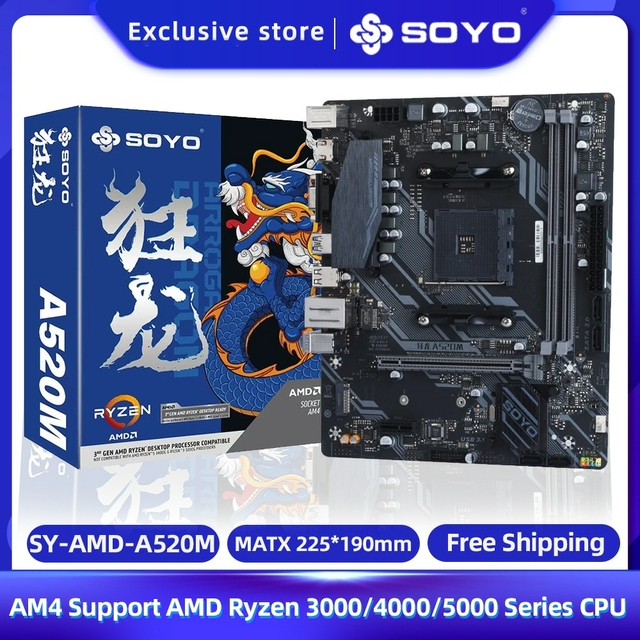 Soyo totalmente novo dragão a520m placa-mãe suporte amd ryzen cpu (3600/4650g/