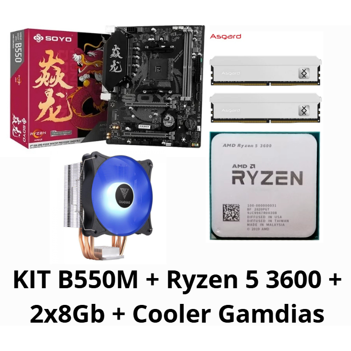 KIT Upgrade Placa mãe Soyo B550M + Ryzen 5 3600 + Asgard 2x8GB + Cooler Gamdias