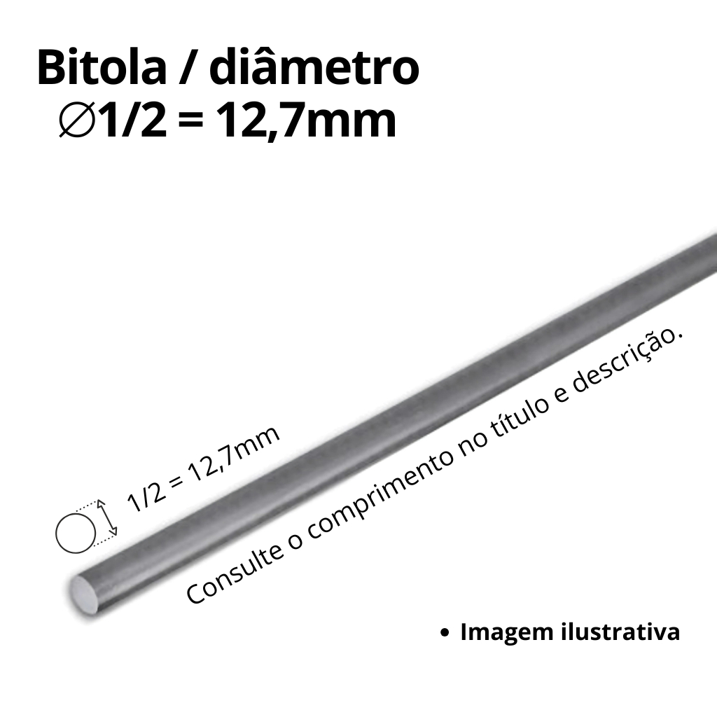 EIXO TARUGO DE AÇO TREFILADO REDONDO 1/2 X 350MM (12,7MM X 350MM)